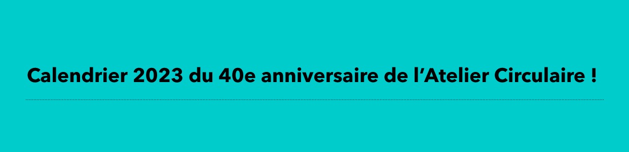 Pour célébrer le 40e anniversaire de l’Atelier Circulaire, nous vous invitons à vous procurer notre calendrier 2023 au design unique, et en édition spéciale.