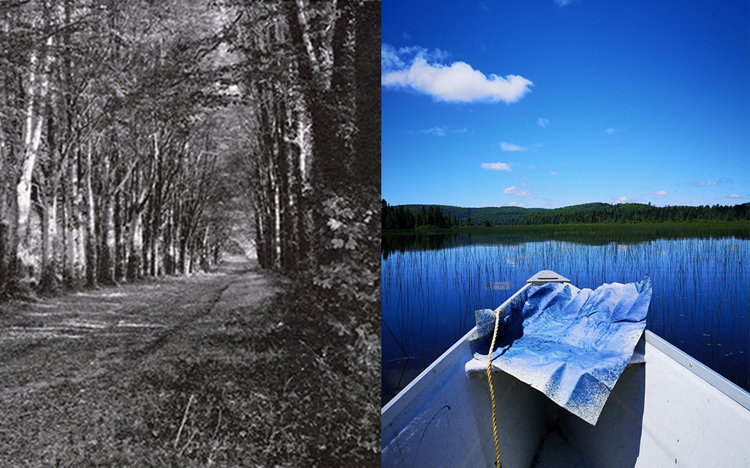 Les collaborations artistiques peuvent prendre de multiples formes et se réaliser à diverses étapes d’un processus de création et de diffusion. Celle d’Alexey Lazarev et de Jean Mailloux a commencé tout récemment, lorsqu’ils ont découvert des similitudes en ce qui a trait aux thèmes et aux préoccupations qu’ils abordent dans leur pratique respective. Leur objectif n’était pas d’influencer la pratique de l’autre, mais plutôt de comparer et de mettre en commun leurs visions et approches par une collaboration étroite lors du montage des œuvres choisies pour l’occasion. Ainsi, s’appuyant sur cinq principaux points communs : l’image fantôme, le paysage, la photographie, les variantes et les collages/assemblages, ils ont créé ensemble des associations d’œuvres qu’ils ont regroupées sur les murs de la galerie.